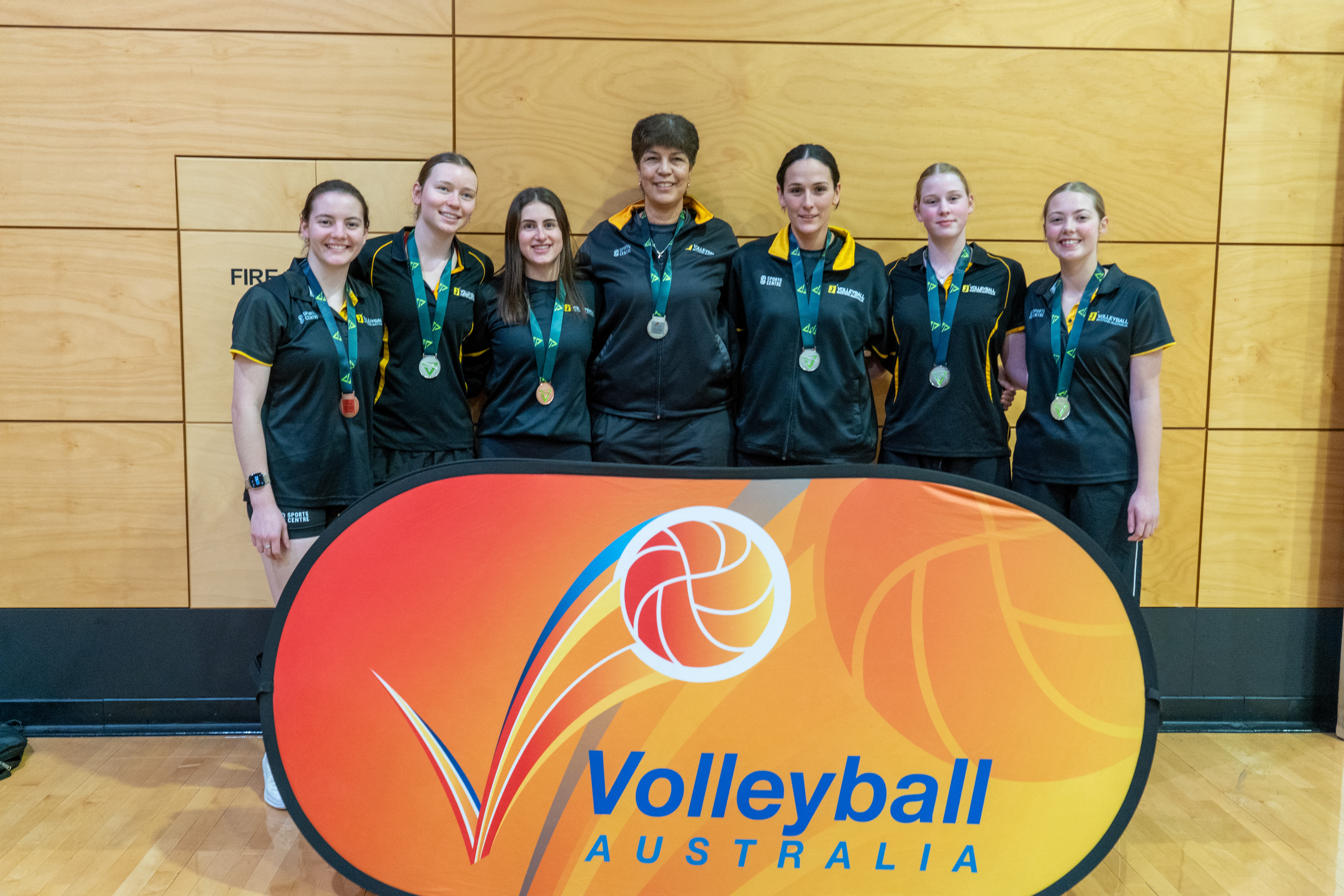 Of the teams at AJVC in Adelaide, all the athletes and coaches from Southern Cross VC walked away with a medal! From U19G, Laurel Wentworth (HC), Leah Clayton (AC), Tara Jorgensen, Zoe Green, and Ellie Manason achieved Silver. From U23G, Jas Serra (AC) and Michelle Hedge achieved Bronze. Well done to you all!